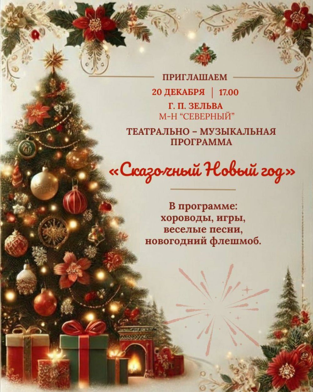 Зельвенцев приглашают окунуться в атмосферу волшебства и праздника на театрально-музыкальной программе «Сказочный Новый год». Не пропустите!